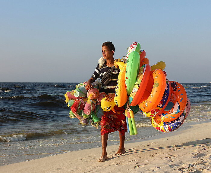 Kinderarbeit ist für Ägypten immer noch ein sehr großes Problem. Man spricht von zwei bis drei Millionen Kindern im Alter von sechs bis 14 Jahren, die arbeiten müssen. Es gibt auch Zahlen, die von sieben Millionen Kindern ausgehen. Sie arbeiten zum Beispiel in den großen Städten wie Kairo und Alexandria als Straßenverkäufer. Wenn du nach Ägypten reist, wirst du hier sehr viele Kinder auf der Straße arbeiten sehen. Die meisten Kinder arbeiten aber in der Landwirtschaft. Dort müssen sie harte körperliche Arbeit verrichten, etwa auf dem Feld. Manche Kinder arbeiten auch als Fischer oder als Kutscher.