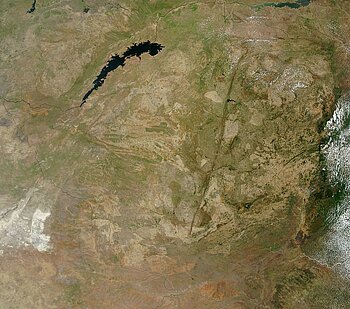 Den größten Teil des Landes nimmt in der Mitte eine Hochebene ein, das Highveld. Veld bezeichnet im Süden Afrikas eine flache Landschaft mit Gras und Büschen. In Simbabwe liegt das Highveld zwischen 1000 und 1600 Metern hoch. Nach Osten steigen die Berge an. Hier liegt auch der Inyangani, der höchste Berg des Landes mit 2592 Metern.