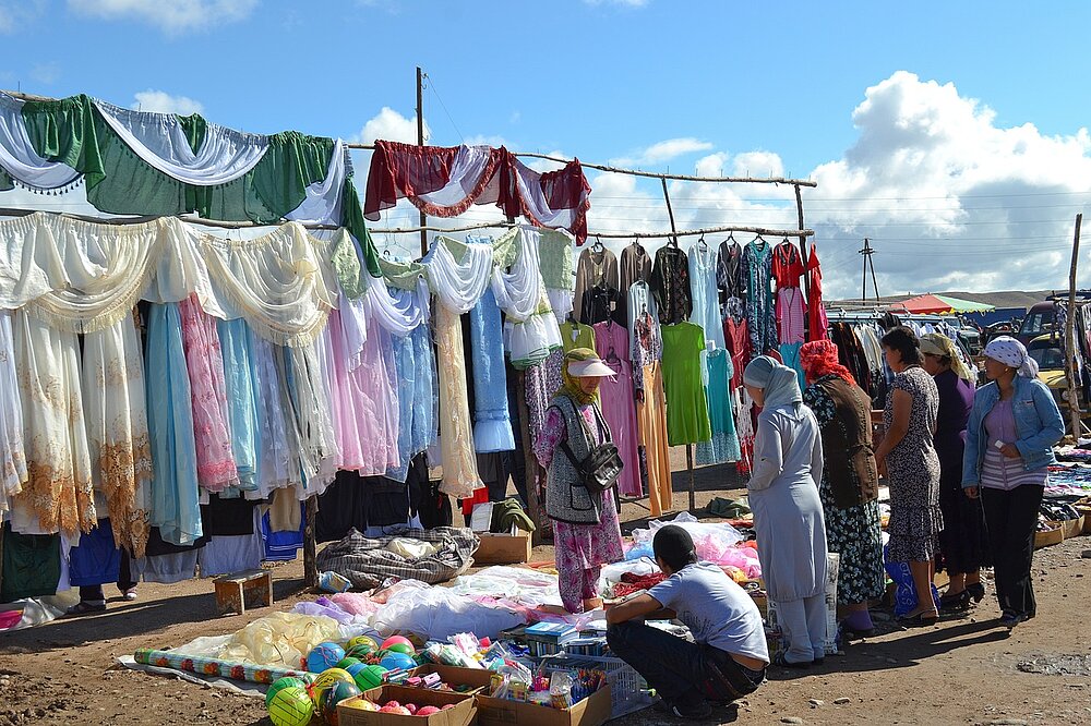 Die meisten Menschen aber sprechen Kirgisisch. Kirgisisch ist eine Turksprache. Es gibt rund 40 Turksprachen, die am weitesten verbreitete ist Türkisch. Kirgisisch ist aber näher mit Usbekisch und Kasachisch verwandt. Kirgisisch selbst hat viele Dialekte.