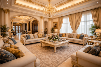 Viele wohlhabende Familien in Kuwait leben in großen Häusern oder Wohnungen mit hohen Decken, großen Zimmern und oft sogar mehreren Wohnzimmern. Eine Besonderheit ist, dass es oft zwei Wohnzimmer gibt – ein Familienwohnzimmer und ein Gästezimmer. Das Gästezimmer wird benutzt, wenn Freund*innen oder Verwandte zu Besuch kommen. Das gehört zur Kultur und zeigt, wie wichtig Gastfreundschaft ist.