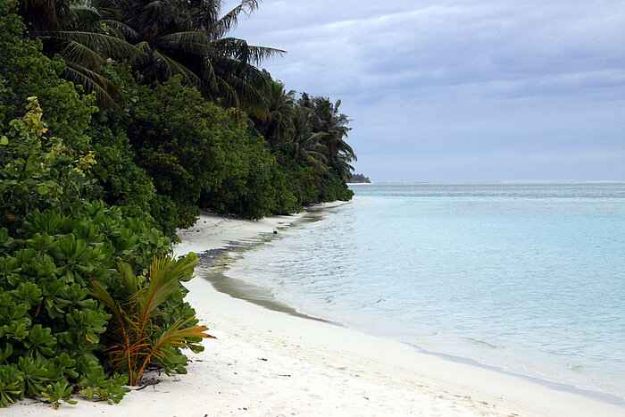 Auf den Malediven gibt es keine Flüsse und auch keine Berge. Die höchste Erhebung über Land ist 2,4 Meter und du findest sie auf der Insel Villingili. Da dürfte eine Bergbesteigung eine einfache Übung werden! Die Inseln liegen nur wenige Meter über dem Meeresspiegel, das siehst du gut auf dem Bild.