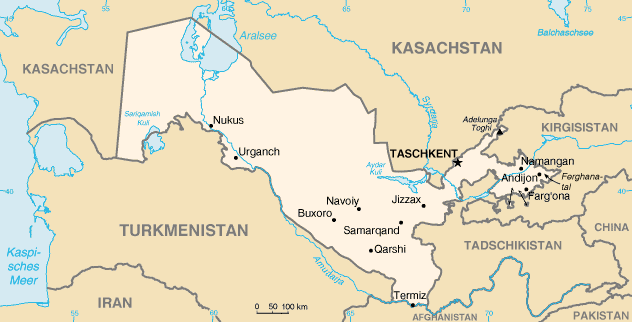 Die Hauptstadt von Usbekistan ist Taschkent. Das ist eigentlich der russische Name. Auf Usbekisch heißt die Stadt Toshkent. Der Name bedeutet "Steinstadt". In Taschkent leben 3 Millionen Einwohner.