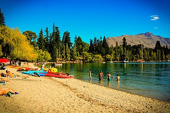 Sport ist für die Kiwis eine wichtige Freizeitbeschäftigung. Am Wochenende, in den Ferien, aber auch nach Feierabend und in der Schule strömen die Neuseeländer nach draußen, um "ihre" Sportart zu treiben. So ist jeder vierte Neuseeländer auf irgendeine Art und Weise sportlich aktiv. Dazu zählen Wassersportarten, die auf den Seen, Flüssen und natürlich auf dem Meer problemlos betrieben werden können. Schwimmen, Segeln, Kanu- und Kajakfahren, Surfen, Wellenreiten, Tauchen und vieles mehr sind da möglich. Nicht zu vergessen das Angeln: Neuseeländer sind begeisterte Angler.