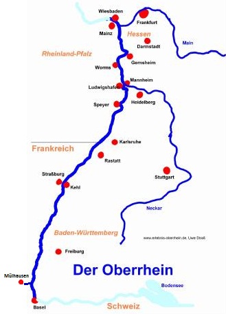 Fast auf seiner ganzen Länge - über eine Strecke von 367 Kilometern - durchfließt der Neckar Baden-Württemberg und ist einer der Nebenflüsse des Rheins - seine Quelle liegt im Schwarzwald bei Villingen- Schwenningen. Den Rhein erreicht der Neckar bei Mannheim. Beim Neckar handelt es sich auch um einen wichtigen Verkehrsweg in Baden-Württemberg. Bekannt ist der Neckar auch für seine vielen Schleifen, so gibt es z.B. bei Zwingenberg eine Neckarschleife zu entdecken. Eine sehr schöne Schleife macht der Neckar auch bei Mundelsheim. Die Schleifen, die der Neckar so macht, erkennst du gut auf der nebenstehenden Karte.