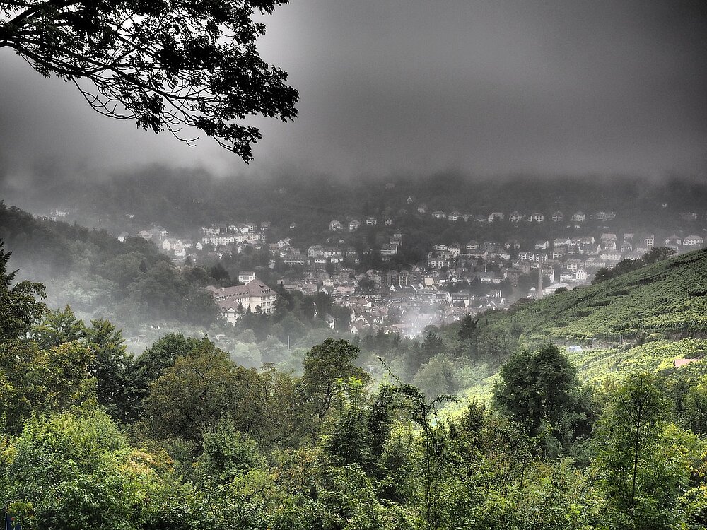Die Stadt liegt in einem Talkessel, was man auch „Kessellage“ nennt. Durch das Tal fließt der Neckar. Diese Lage sieht zwar schön aus, hat aber auch Nachteile, zum Beispiel bei der Luftzirkulation.