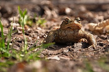 Eine der häufigsten Amphibienarten in Brandenburg ist die Erdkröte, doch sie steht nicht auf der Roten Liste der gefährdeten Tiere. Allerdings droht auch ihr aufgrund des Verkehrs Gefahr. Du findest sie vor allem in Waldgebieten und offenen Landschaften. Die Zerschneidung der Landschaft ist bedrohlich für die Erdkröten, die sich sehr gerne auf Wanderschaft begeben. Hier werden sie dann überfahren, weil sie nicht schnell genug über die Straßen gelangen. Auch wenn Brandenburg noch Bestände an Erdkröten vorzuweisen hat, ist die Erdkröte laut Bundesartenschutzverordnung "besonders gefährdet".