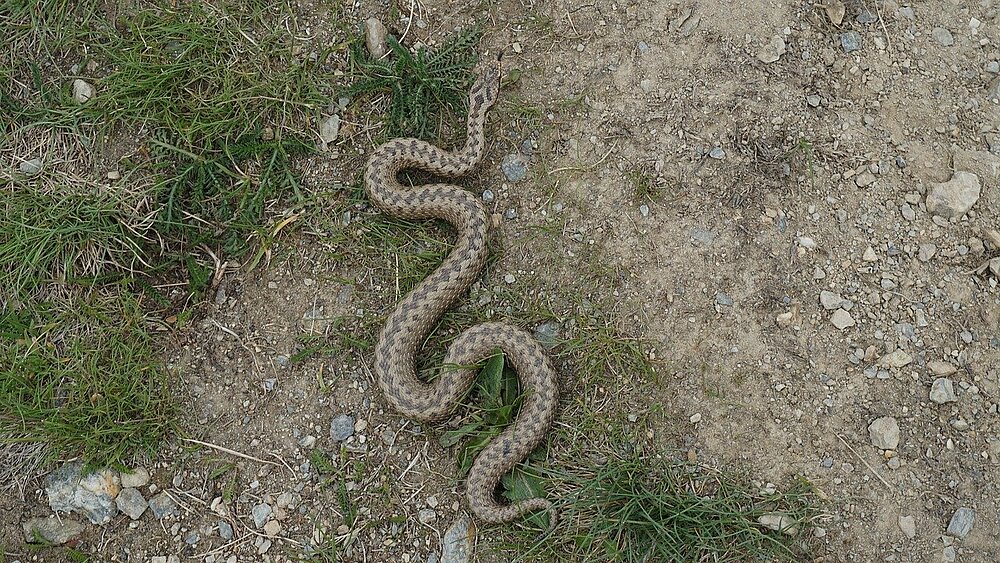 Ebenfalls vorwiegend in der Heide lebt die Kreuzotter. Sie kommt zwar in fast ganz Deutschland vor, hat aber hier noch ein größeres Verbreitungsgebiet. Du kannst sie an dem Zickzackband auf ihrem Rücken erkennen. Ihre Länge beträgt im Durchschnitt 60 Zentimeter, das ist nicht sehr lang.