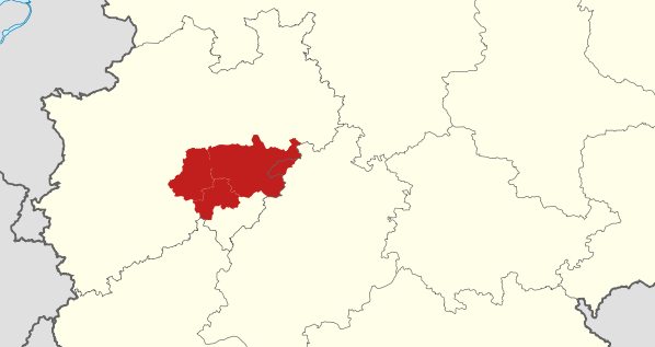 Der Süden von Nordrhein-Westfalen teilt sich von West nach Ost in die Eifel, die Niederrheinische Bucht, das Bergische Land sowie Sauer- und Siegerland. Schauen wir zunächst auf die Niederrheinische Bucht, das einzige Tiefland, das uns noch fehlt. Es liegt südlich vom Niederrheinischen Tiefland und zwischen Eifel im Südwesten sowie Bergischem Land im Osten. Es erstreckt sich hier ebenfalls zu beiden Seiten des Rheins, aber eben südlich von Düsseldorf.