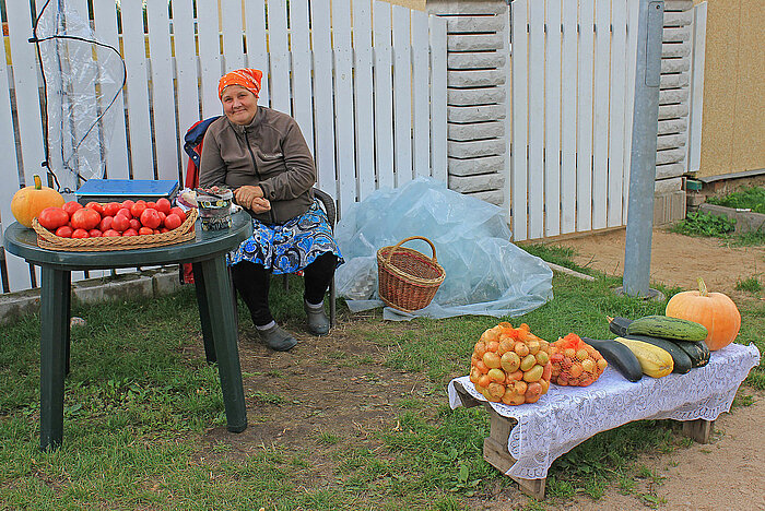 Tomaten, Zwiebeln, Zucchini und Kürbis hat diese Frau im Angebot. [ © Kalervo Kinnunen / CC BY-SA 3.0 ] -