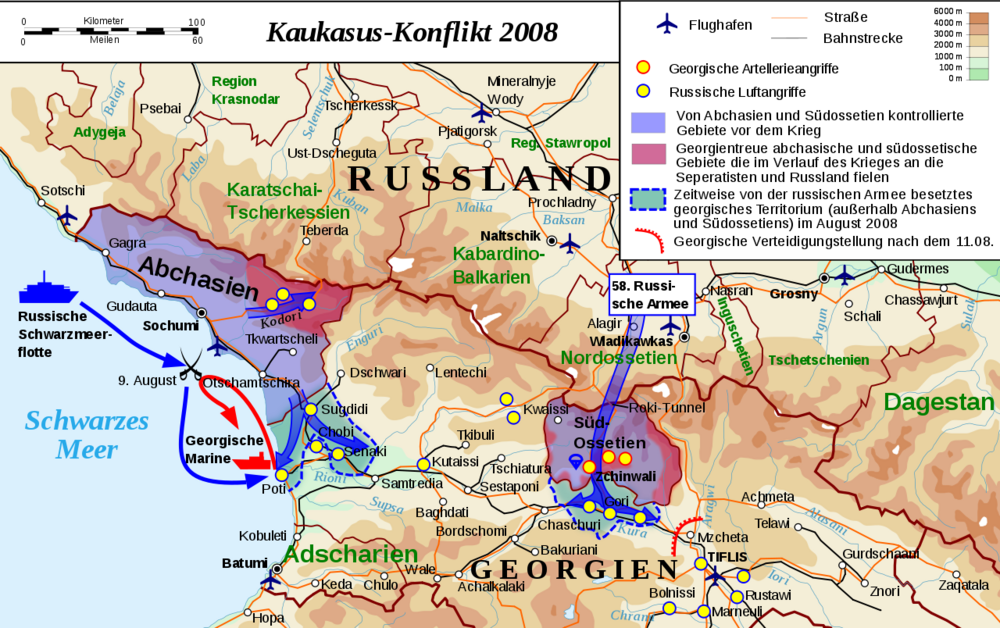 2008 kam es zum Kaukasuskrieg. Südossetien und Abchasien hatten sich schon 1990 von Georgien losgesagt. Russland unterstützte Südossetien, als es von Georgien angegriffen wurde, und erkannte es nach dem Sieg genauso wie Abchasien als eigenständiges Land an. International wird die Unabhängigkeit der beiden Länder nicht anerkannt.