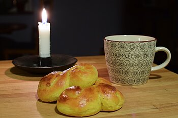 Lussekatter backt man in Schweden zum Luciafest am 13. Dezember. Traditionell isst man dann bis Weihnachten jeden Tag ein Lussekatt. Das Wort bedeutet übrigens Luciakatze. Das Hefegebäck bekommt seine gelbe Färbung durch die Zugabe von Safran. Geformt werden Lussekatter wie ein umgedrehtes "S". Versuch doch mal, die schwedische Katze zu backen!