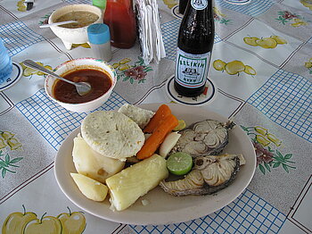 Ähnlich sind die Tortillas, sehr flache Maisfladen, die man auch in Mexiko oder Guatemala sehr viel zu sich nimmt. Bohnenbrei und Rührei machen das Frühstück komplett.