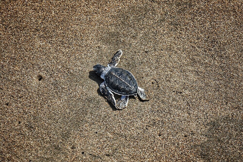 Die Sonne brütet dann die Eier aus und wenn kein menschlicher oder tierischer Räuber gekommen ist, finden die neugeborenen Schildkröten gleich den Weg ins Wasser, wenn sie sich aus ihrem Ei gewühlt haben.
