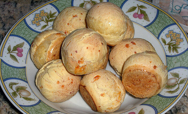 Pão de queijo bedeutet übersetzt Käsebrot. Es handelt sich aber tatsächlich um Bällchen aus Brandteig. Maniokstärke und eben Käse sind die Zutaten. Auch gekochte und gestampfte Kartoffeln können enthalten sein. Es wird gerne zu Hause gebacken, ist aber auch in jeder brasilianischen Bäckerei zu finden.