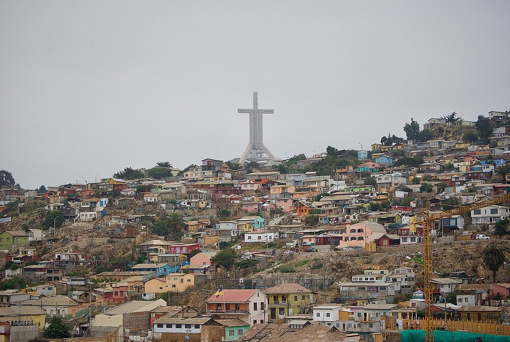 Santiago de Chile ist das politische, kulturelle und wirtschaftliche Zentrum des Landes. Immer wieder kommt es zu Erdbeben. Daher sind nur wenige alte Gebäude aus der Kolonialzeit erhalten.