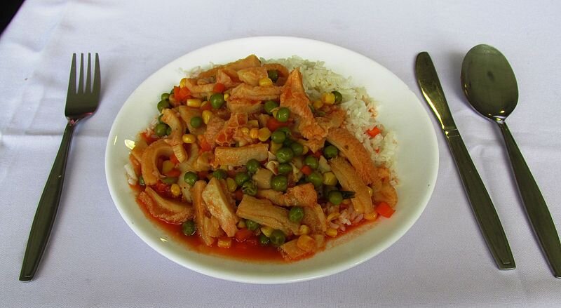 Traditionell gibt es mittags das größte Essen mit drei Gängen: nach einer Suppe folgt der Hauptgang, oft mit Reis, manchmal auch mit Kartoffeln als Beilage zu Fleisch oder Fisch.